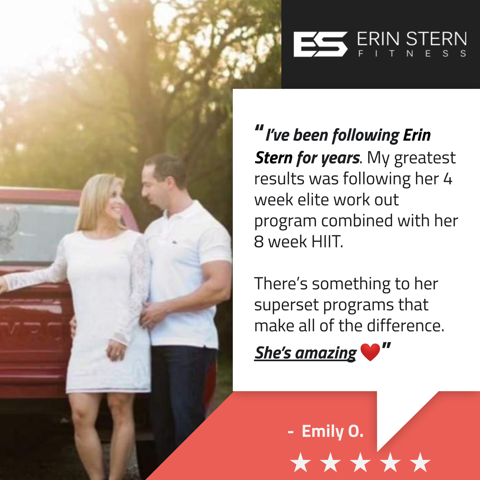 “I love Erin!! Whether you are looking to understand exercise nutrition, build muscle, increase strength, lean down or you're just trying to implement new exercise techniques, Erin has each detail explained scientifically and from a personal perspective. Every aspect of being physically fit, healthy and balanced she has mastered. I’ve been a fan for many years and will continue to be.” ⭐⭐⭐⭐⭐